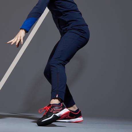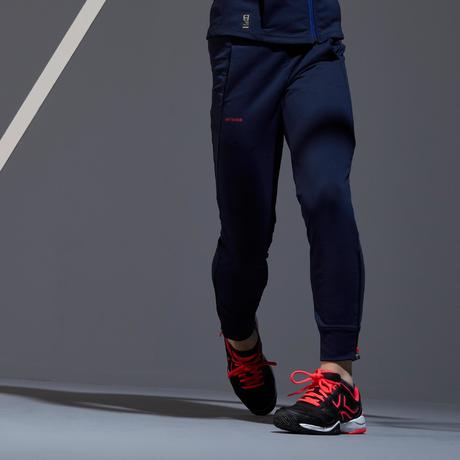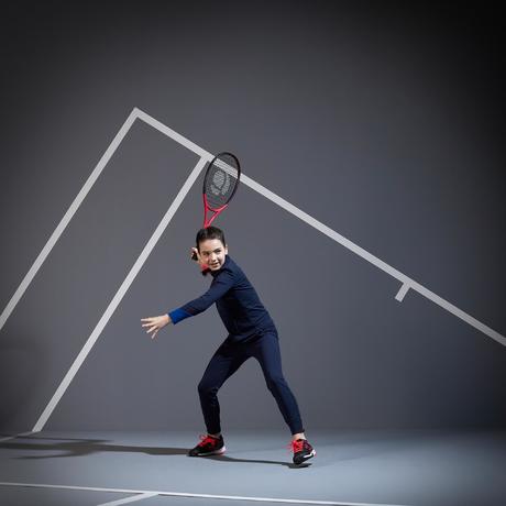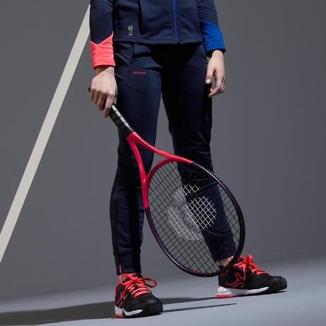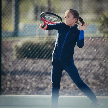 Bas de survêtement Artengo de l'ensemble fille pour démarrer le mini-tennis pour ma fille de 4,5 ans. Cet ensemble lui permet de ne pas avoir froid avec les températures actuelles et d'être très à l'aise pour courir et se dépenser autant qu'elle veut sans que le pantalon ne tombe ou la gène.